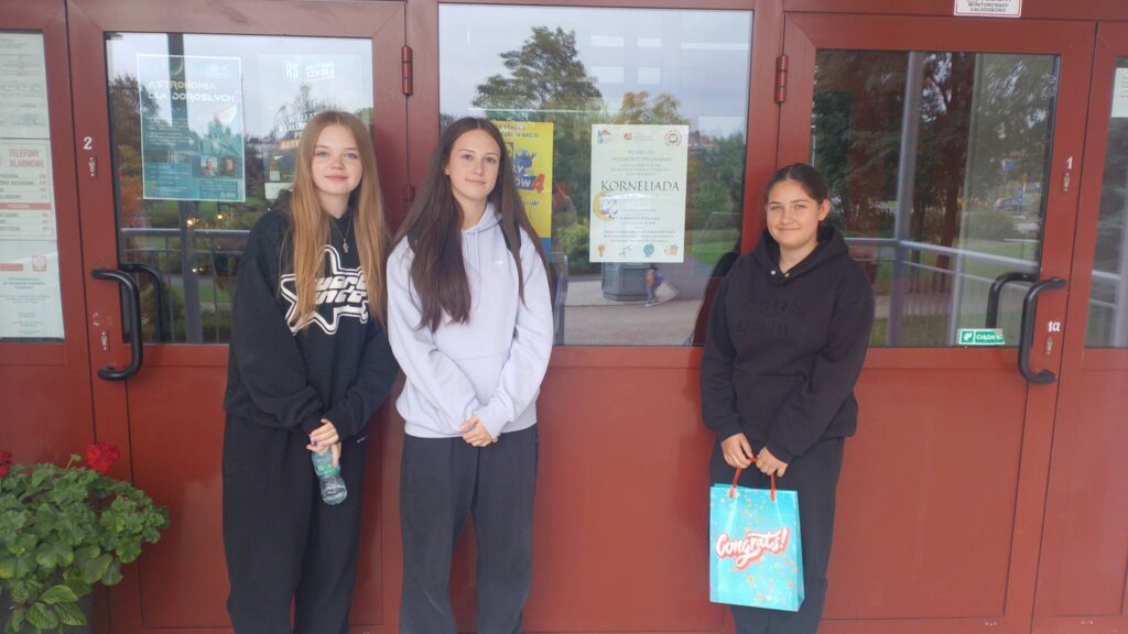 W środę 1 października w Szkole Podstawowej nr 2 w Polkowicach odbyła się pierwsza edycja powiatowego konkursu interdyscyplinarnego dla klas ósmych „Korneliada”. Uczniowie musieli przygotować się aż z ośmiu przedmiotów: j.polskiego, matematyki, historii, języka angielskiego, biologii, chemii, fizyki i geografii. Oprócz naszej szkoły do rywalizacji stanęło jeszcze siedem szkół powiatu polkowickiego: SP w Rzeczycy, SP w Radwanicach, SP w Chocianowie i cztery szkoły z Polkowic. Każdy zespół miał do wykonania szereg zadań obejmujących różne dziedziny wiedzy – od matematyki, języka polskiego, przez nauki przyrodnicze, aż po wiedzę ogólną i logiczne łamigłówki. Uczestnicy musieli wykazać się wszechstronną wiedzą. Zadania do wykonania były zarówno teoretyczne jak i praktyczne. Uczniowie rozwiązywali zadania grupowe na nowoczesnym sprzęcie. Nie zabrakło również elementów wymagających kreatywności, refleksu i współpracy w grupie. Po każdej rundzie uczniowie mieli mały przerywnik sportowy, który pomógł zintegrować się wszystkim uczestnikom. Wydarzenie odbyło się pod patronatem burmistrza Polkowic Wiesława Wabika oraz Powiatowego Ośrodka Poradnictwa Psychologiczno-Pedagogicznego i Doradztwa Metodycznego w Polkowicach. Nasza drużyna w składzie: Alicja Rządzińska, Emilia Gabrysz i Viktoria Kowalska ostatecznie zdobyła 7 miejsce. Laureaci otrzymali pamiątkowe dyplomy oraz nagrody rzeczowe, a wszystkie drużyny zasłużone brawa i gratulacje.