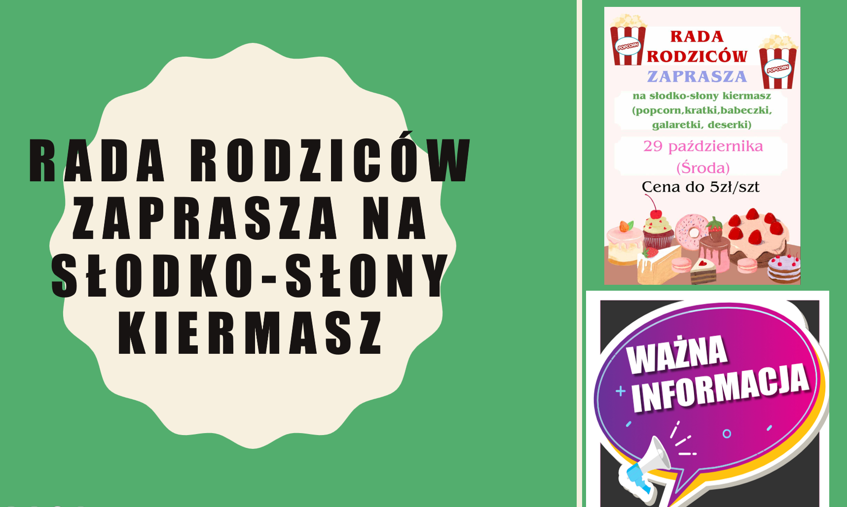 Rada Rodziców serdecznie zaprasza na słodko-słony kiermasz, który odbędzie się w środę 29 października na terenie naszej szkoły. Na sprzedaż będą: babeczki, galaretki, deserki a także popcorn i kratki. Koszt to 5 zł za sztukę/ torebeczkę popcornu. Serdecznie zapraszamy!
