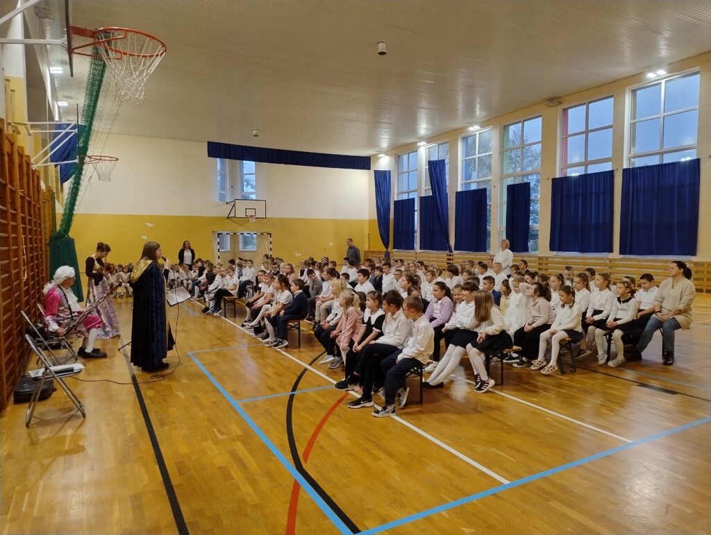 W piątek 24 października odbył się pierwszy w tym roku szkolnym koncert filharmonii. Uczniowie klas 1-3 obejrzeli koncert pt. ” Śpiąca królewna”, natomiast uczniowie klas 4-6 pt.” Jak Amadeusz został słynnym Mozartem”. W czasie koncertu uczniowie słuchali utworów wygrywanych przez klarnet i skrzypce. dźwięk. Gdy instrumenty opowiadają wszystkie dzieci słuchają, a w wyobraźni dziecięcej muzyka tworzy obrazy, a koncerty te służą również edukacji muzycznej, zapoznając dzieci z różnymi gatunkami, kompozytorami i instrumentami w przystępny sposób.