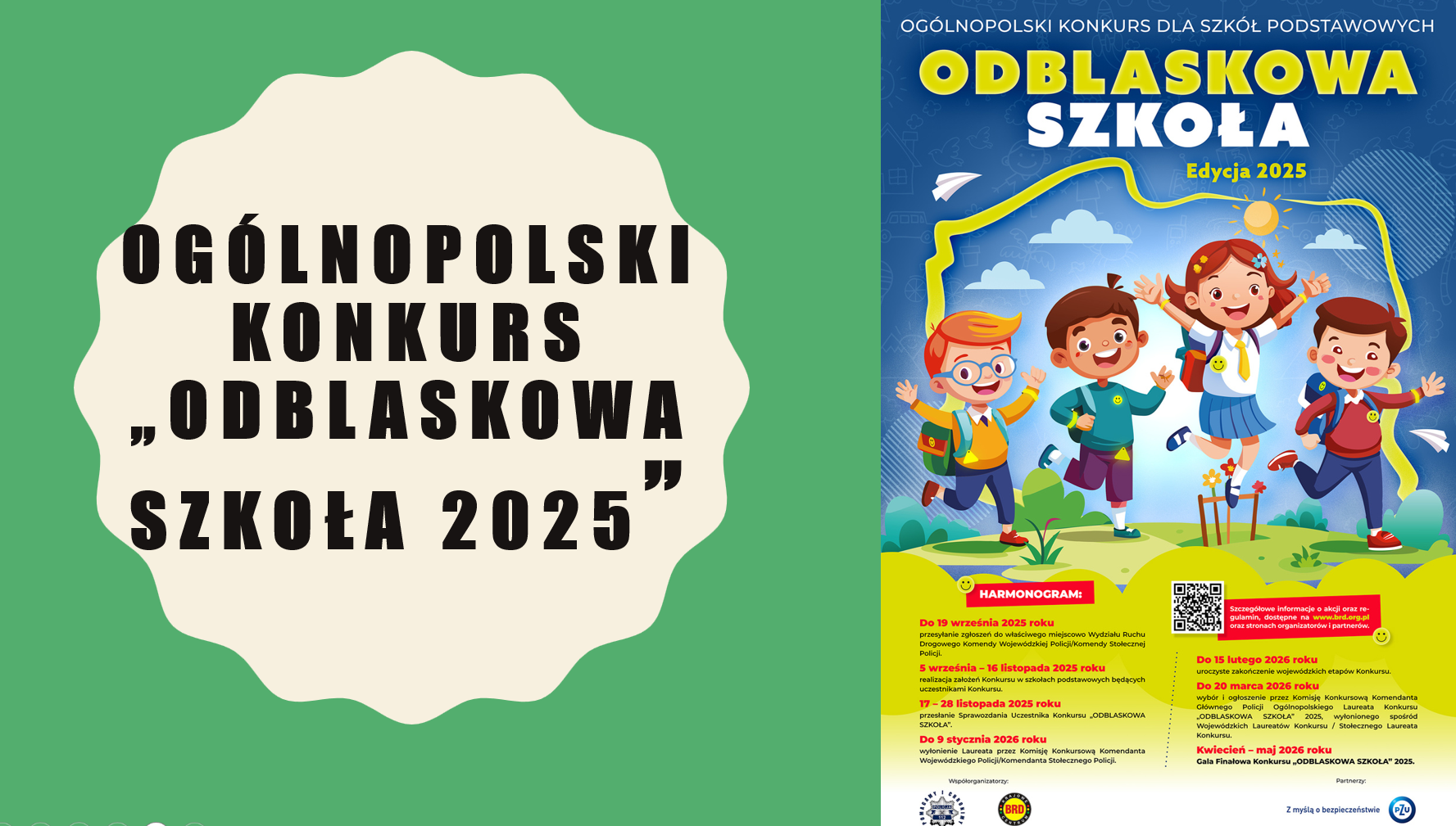 Nasza szkoła bierze udział w Ogólnopolskim Konkursie “Odblaskowa Szkoła”. Koordynatorem tego konkursu jest Biuro Ruchu Drogowego Komendy Głównej Policji.
