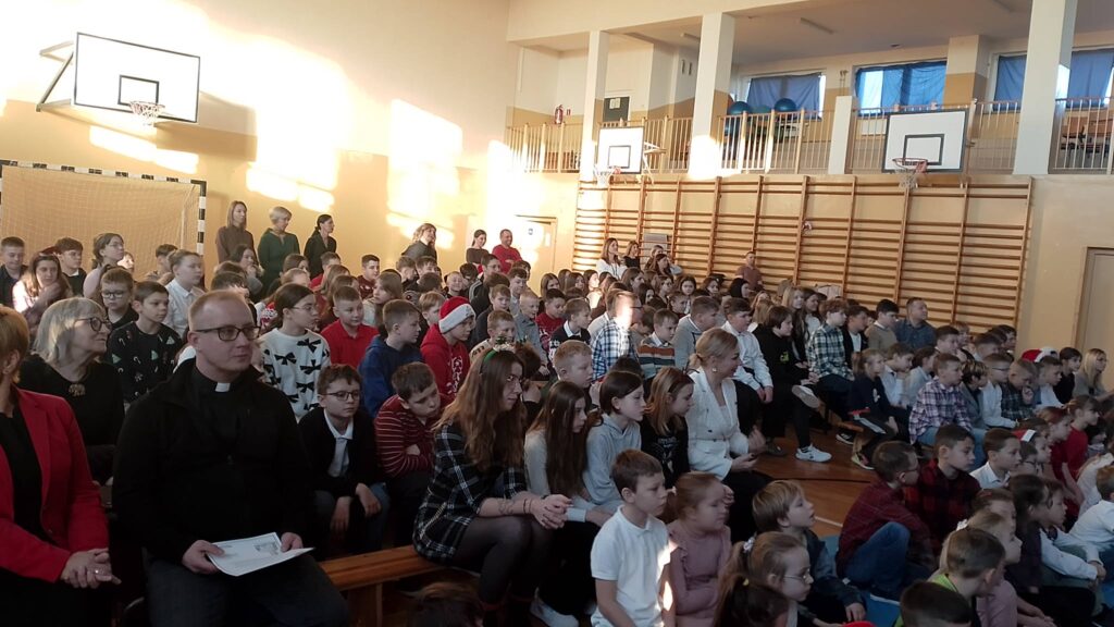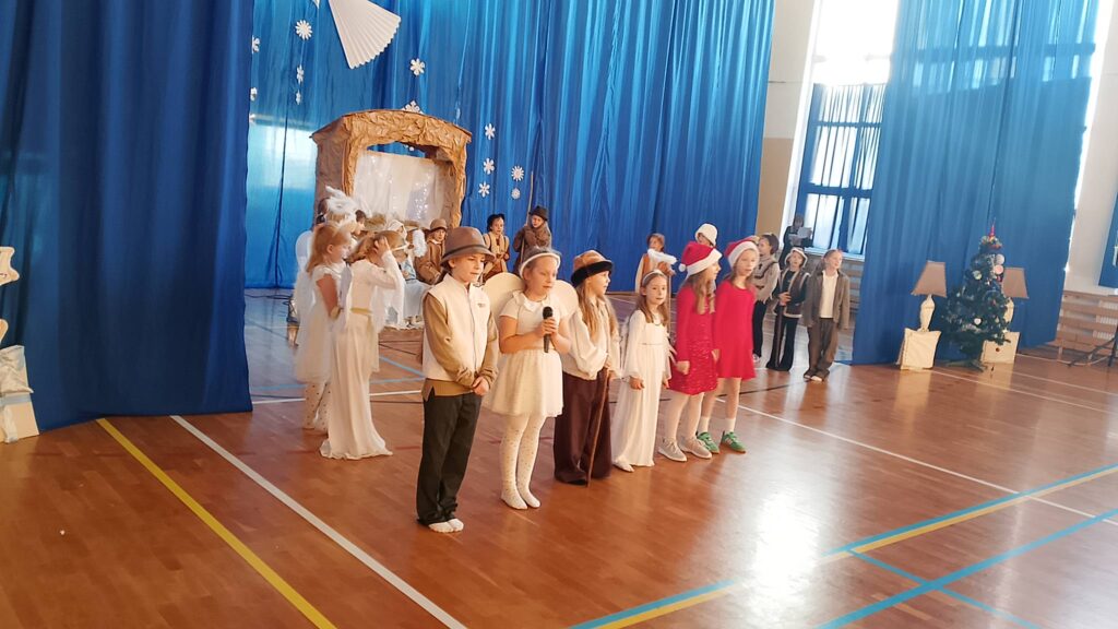W piątek 19 grudnia w świątecznej atmosferze, pełnej wzruszeń i radości, odbyły się szkolne jasełka. Uczniowie klas 1-3 oraz klasy piątej pod opieką pani Bożeny Kiwackiej i pani Iwony Rygiel przygotowali przepiękne świąteczne przedstawienie. Nasi uczniowie z ogromnym zaangażowaniem wcielili się w swoje role, przypominając nam o tym, co w Świętach Bożego Narodzenia jest najważniejsze – miłość, dobroć i wspólnota. Publiczność po raz kolejny mogła przeżyć historię Marii i Józefa. Scenki z życia nowo narodzonego dzieciątka, pasterzy, mędrców przeplatane były kolędami i pastorałkami.