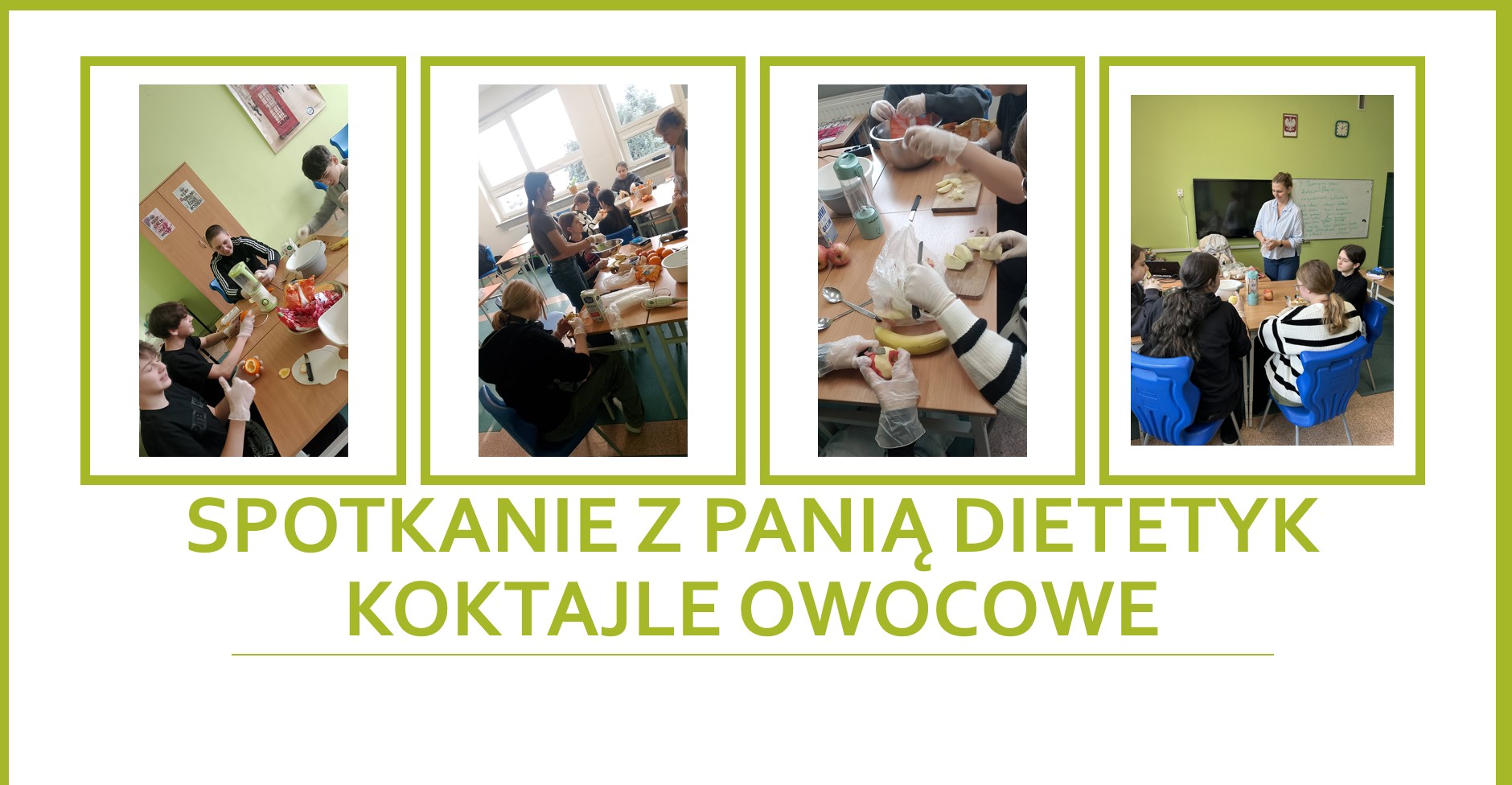 W poniedziałek 16 lutego uczniowie klasy 7a wzięli udział w spotkaniu z panią dietetyk Dorotą Mickiewicz-Górą, podczas którego uczniowie przygotowali przepyszne i zdrowe koktajle owocowe. Zajęcia rozpoczęły się krótką pogadanką na temat roli owoców w codziennej diecie i tego, dlaczego warto wybierać naturalne składniki zamiast gotowych, słodzonych napojów. Pani dietetyk w przystępny sposób opowiedziała dzieciom o witaminach, błonniku i zdrowych nawykach żywieniowych. Następnie przyszedł czas na część praktyczną – uczniowie z ogromnym zaangażowaniem kroiły owoce, komponowały własne koktajlowe mieszanki i poznawały nowe smaki. Wśród składników znalazły się m.in. banany, truskawki, mango, borówki, mleko. Nie zabrakło radości, śmiechu i oczywiście… pysznej degustacji! Zajęcia z panią dietetyk nie tylko rozbudziły ciekawość dzieci do zdrowego odżywiania, ale także pokazały, że robienie zdrowych przekąsek może być świetną zabawą. Warsztaty zostały zrealizowane jako element edukacji prozdrowotnej.