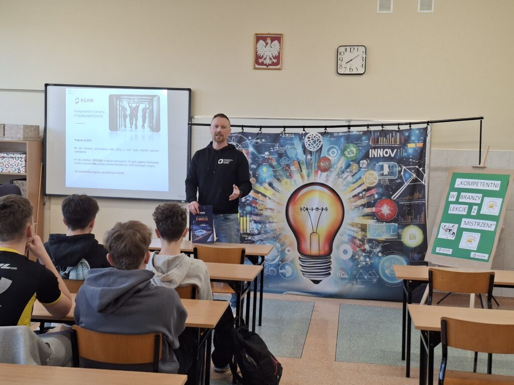 Dnia 4 marca br. w naszej szkole odbyło się spotkanie z przedstawicielami KGHM Polska Miedź S.A w ramach programu „Kompetentni w branży. Lekcje z Mistrzem”. W wydarzeniu wzięli udział uczniowie klasy 8a, którzy mieli okazję poznać specyfikę pracy w branży górniczo-hutniczej.
